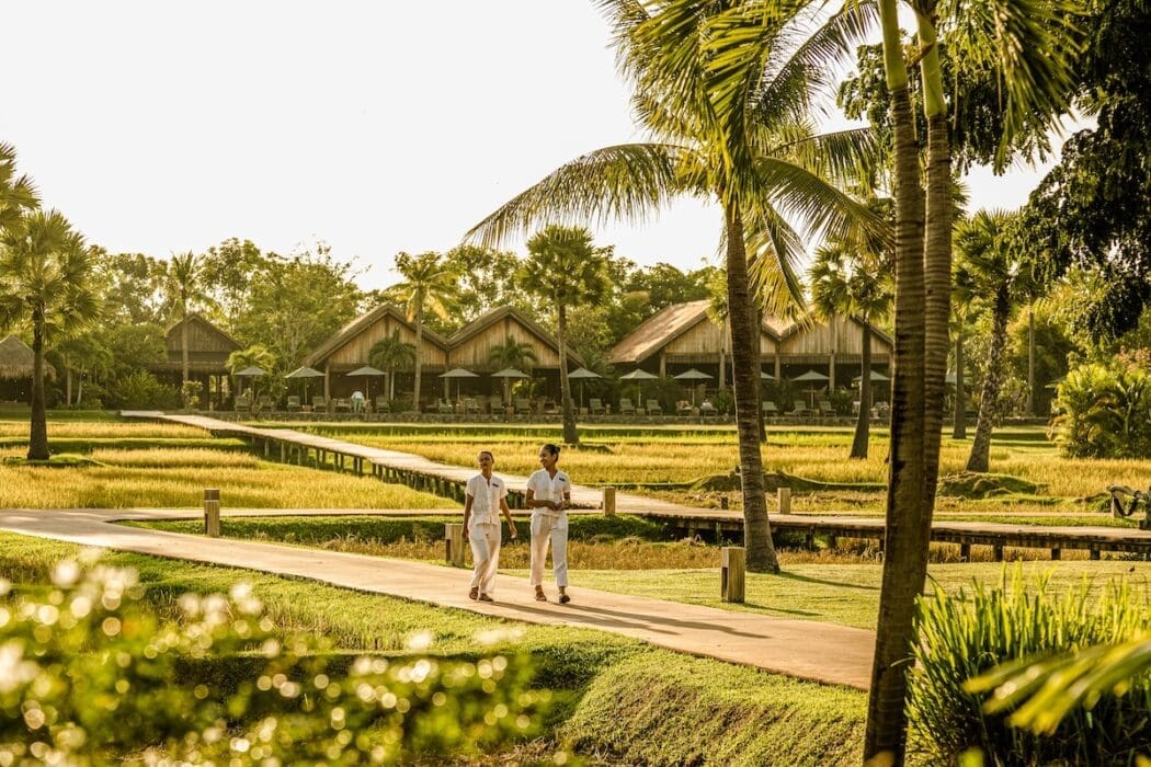 Le cinq-étoiles au milieu d’une rizière, à 10 minutes de Siem Reap, fête ses 10 ans. L’âme et le cœur cambodgiens avec ses 45 villas au mobilier et accessoires indochinois, sa table gastronomique khmère, son spa et ses cours pour sculpter les fleurs de lotus.