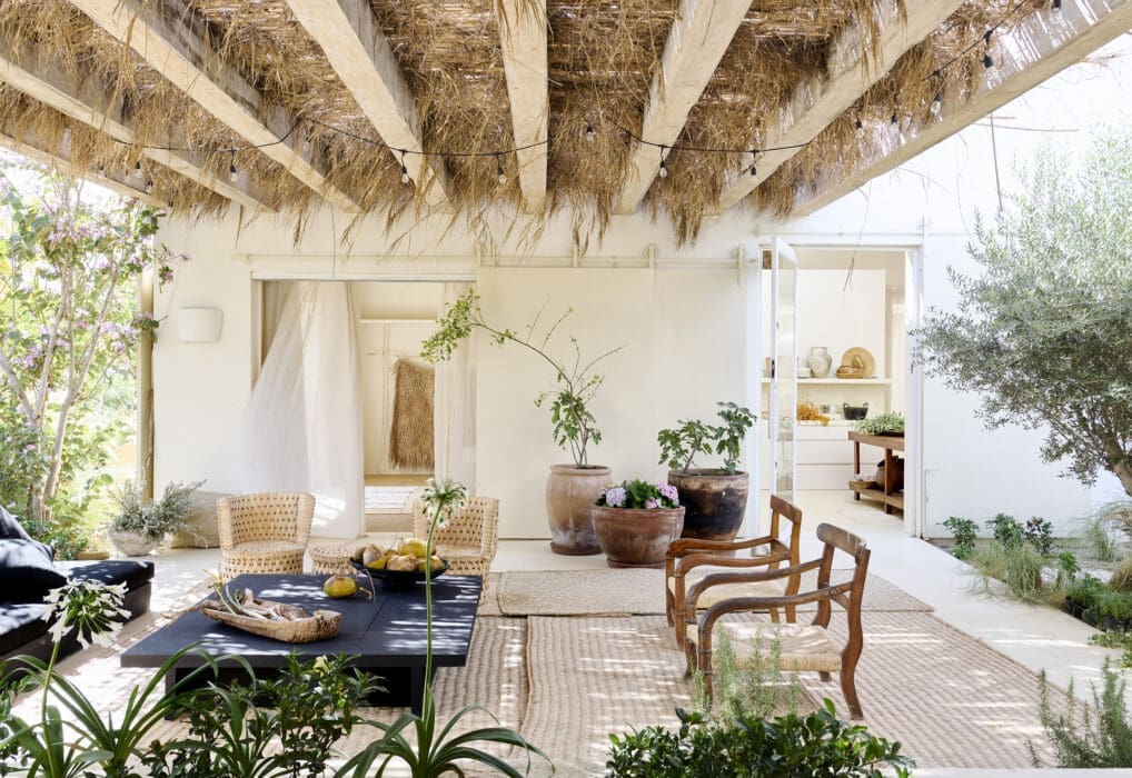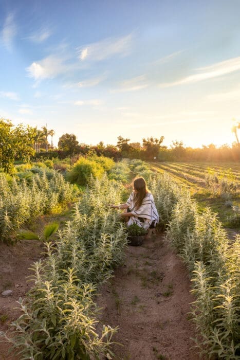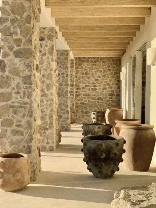 Sardo-argentine, Jasmine Scalesciani, Hawken par mariage, a depuis l’enfance passé toutes ses vacances loin du monde, en des endroits sauvages, retirés, tant en Italie qu’en Argentine. Et eu la chance de vivre ses étés, gamine, en Sardaigne, dans une maison dessinée par Alberto Ponis, l’architecte sarde vedette des années 1960, une maison fondue littéralement dans la roche tourmentée alentour. Devenue adulte, coach en mieux-être, Jasmine a décidé qu’il était temps de trouver son lieu, un lieu qui lui ressemble et lui permette de concilier vie personnelle et vie pro. À savoir y vivre en famille mais aussi organiser des retraites ayurvédiques pour une poignée d’hôtes sensibles à l’environnement. Elle a cherché, cherché autour de Ojai, en Californie, où elle séjourne de longs mois. Jusqu’à ce qu’elle dégotte la perle rare, à condition d’avoir imagination et courage, dans un petit village mexicain, El Pescadero, à une heure de Cabo San Lucas, cité balnéaire au bord du Pacifique. Le bien : une propriété agricole de quelque 3 hectares proche de la plage, avec vue sur l’océan doublée d’un verger de dattiers, cocotiers, manguiers, etc., et annoncée par une allée de palmiers royaux. Une pépite. Ne manquaient que des roches et l’obligation de remettre en état la terre épuisée par une culture intensive et l’usage intempestif de produits chimiques. Mais le cadre exceptionnel se prêtait parfaitement à la construction d’une demeure écoresponsable, pour de temps à autre accueillir une poignée d’hôtes qui, sous la conduite de Jasmine, experte en retraites ayurvédiques et en jeûnes, viendraient se ressourcer.