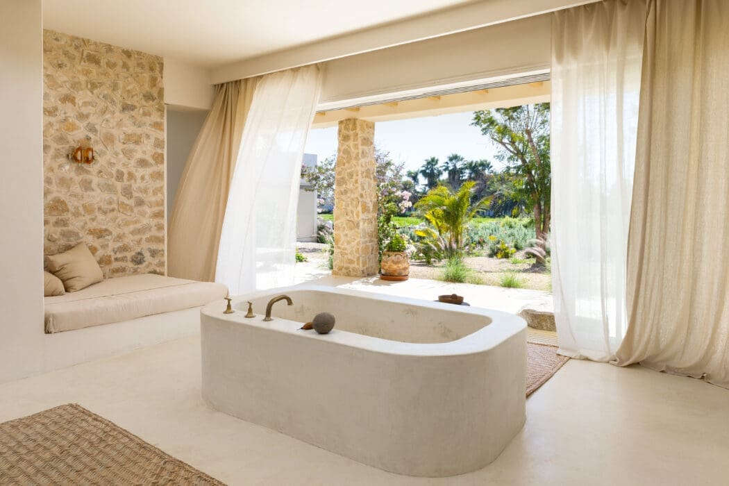 Nua Nakūi décline deux entités, une maison principale, que l’on peut qualifier de privée, pour Jasmine, sa famille et ses amis, et une résidence d’hôtes baptisée « Bathhouse » au regard de l’immense pièce salon-salle de bains, dédiée aux soins du corps. Un patio recouvert de bambou relie les deux maisons, l’espace idéal pour prendre son petit-déjeuner, se retrouver le soir, écouter de la musique, regarder le coucher de soleil. Tous ensemble.