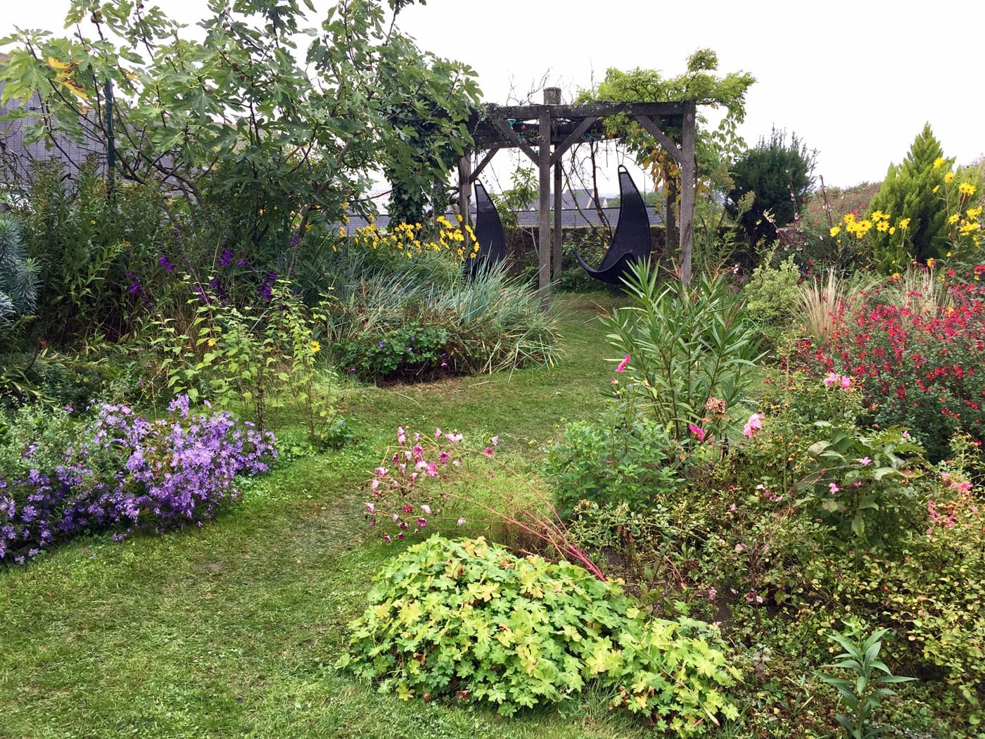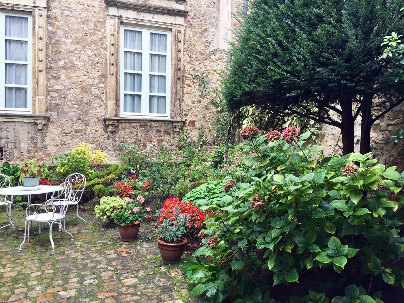 Des cours et des jardins ! De toutes sortes, cour majestueuse de l’hôtel de Vaux, ou petite cour du Logis du Tanneur, jardin romantique de la maison des Morets, jardin municipal des simples, immense jardin de la maison de Surveillance perché sur la muraille, minuscule jardinet de la maison de la Courtoisie… Et partout, jusqu’au moindre recoin, un foisonnement de fleurs de fin d’été, dahlias, hortensias, rosiers, sauges, d’objets destinés aux jardins et balcons, d’accessoires de jardinage, de plantes d’ici ou d’ailleurs, sans oublier les petits cafés où se restaurer, avant de reprendre la découverte d’un très joli festival.