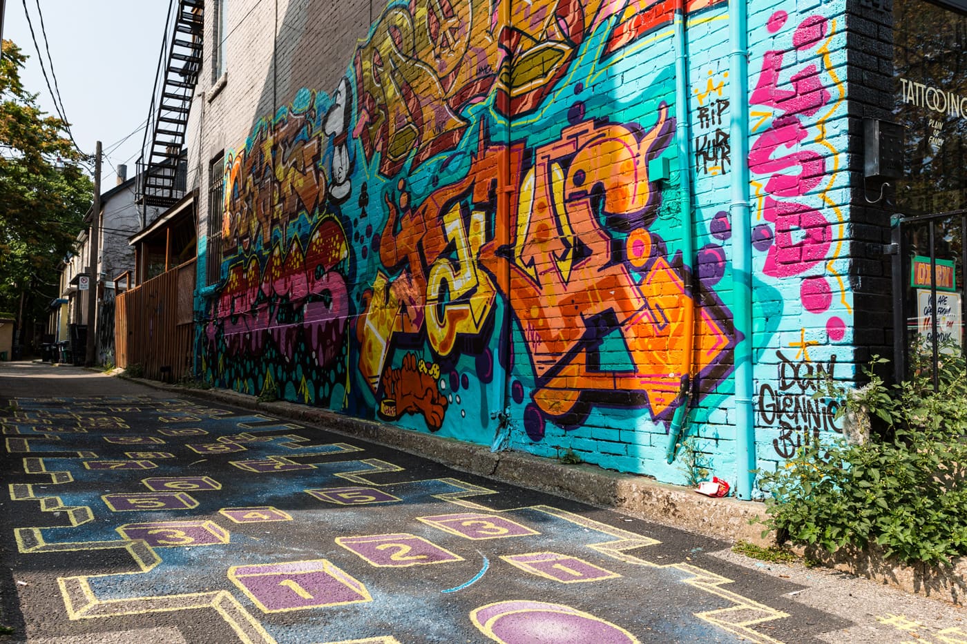 Toronto pulse entre nature et gratte-ciel, XVIIIe et XXIe siècle. Un bouillon de culture qui s’exprime à ciel ouvert, à deux pas du 401 Richmond à Graffiti Alley, une ruelle d’environ 300 mètres située à l’ouest de la rue Spadina et au sud de la très branchée Queen Street West, où le street art a pris possession d’anciennes maisons victoriennes.