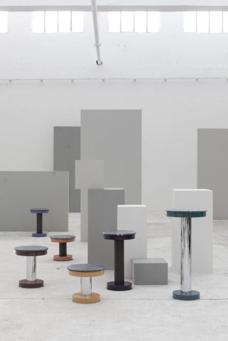 Spécialiste du luminaire, Magic Circus déploie son univers joyeux dans le petit mobilier. Étagères, bureau, tabourets, tables et même le désuet piédestal retrouvent un souffle nouveau grâce au dessin de Marie-Lise Féry, la fondatrice de cet éditeur lyonnais. Jeux de couleurs et de matériaux viennent animer les lignes rigoureuses, quasi architecturales de cette collection qui réveille les intérieurs les plus sobres.