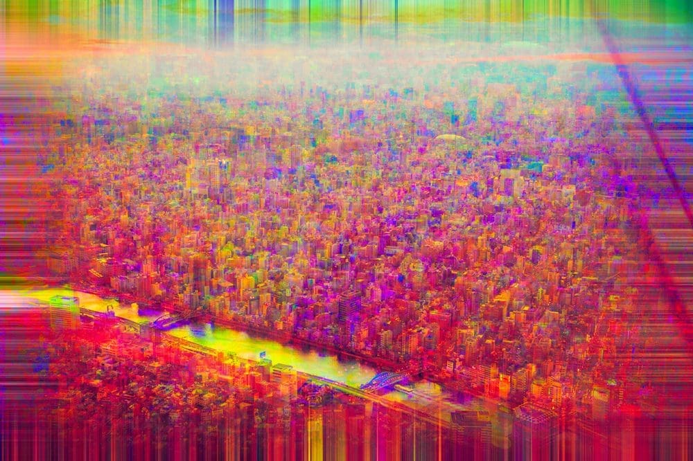 Artiste digital et photographe, Maxime Passadore nous plonge dans une expérience artistique hybride à la frontière du glitch art, de la vidéo expérimentale et de la photographie, en alliant des techniques allant du digital à l’analogique. L’artiste crée une imagerie retro-futuriste à l’aide de techniques audiovisuelles.