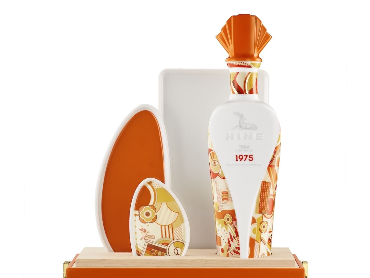Hine, une des plus belles et anciennes maisons de cognac, offre à son millésime 1975, une carafe signée Bernardaud à la hauteur de ses arômes : « 1975 fut une année remarquable sur le plan climatique, et tout autant sur le plan artistique. Cette collaboration reflète ce bouillonnement culturel et puise dans les années seventies son esthétisme », assurent ensemble les deux maisons. Le flacon est ceint d’un papier d’art aux motifs représentatifs de cette époque.