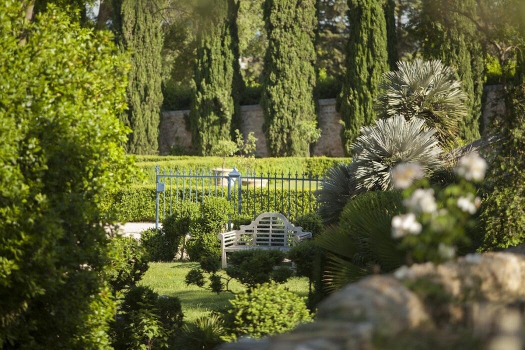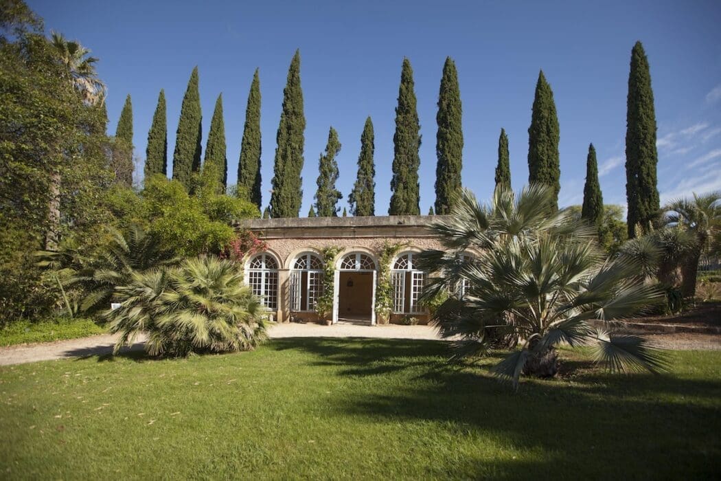 Jamais Étienne de Flaugergues, conseiller à la Cour des comptes, n’aurait imaginé que son domaine acquis en 1696 et sa folie, résidence d’été qu’il y fit construire et où il séjournait trois mois par an, situés en pleine campagne, se retrouveraient au cœur de Montpellier, en milieu urbain, sans perdre ses hectares cultivés, plantés, entretenus. Au fil du temps, la ville a grignoté la campagne. La famille Colbert, aujourd’hui propriétaire, s’attache coûte que coûte à préserver le caractère du château hérité de ses ancêtres et ses parures végétales. Elle a même, avec le paysagiste Emmanuel de Sauveboeuf, redessiné dans les années 1970, son parc à la française avec ses buis taillés, ses fontaines, ses cyprès florentins et son orangerie riche d’agrumes l’hiver. En parallèle, elle s’investit, avec son équipe forte de 25 personnes, afin que ses 18 hectares de vignoble, sur deux sites, certifiés HEV – exploitations à Haute valeur environnementale –, cohabitent avec des espaces jardiniers. Ainsi, quelque 44 variétés de rosiers embaument dès avril et 35 de palmiers s’ébouriffent dans le ciel souvent bleu, louchant avec un rien de jalousie sur la collection d’essences collectées au hasard des voyages sur tous les continents. On y trouve la préférée des enfants, l’oranger dit des Osages, tribu amérindienne qui utilisait le latex laiteux de son fruit non comestible pour balafrer leurs visages de couleur et teindre leurs vêtements.