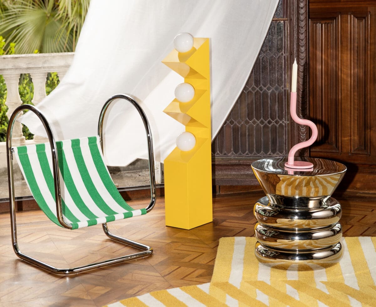 Axel Chay a fait une entrée fracassante dans le monde du design grâce à son univers joyeux, graphique et décomplexé, directement inspiré de l’art cinétique et du courant Memphis. Il rejoint la liste des prestigieux invités de Monoprix, qui vient de dévoiler sa première collaboration de l’année avec le designer marseillais. Luminaires, art de la table, petite décoration, mobilier et tapis composeront la collection « Folies », mettant la couleur à l’honneur, mais aussi les lignes ludiques et récréatives. Toujours dans une volonté de populariser le design, l’enseigne annonce trois autres collaborations dans les semaines qui viennent : Alexandre Benjamin Navet en mars, Lisa Corti en avril et João Incerti en mai.