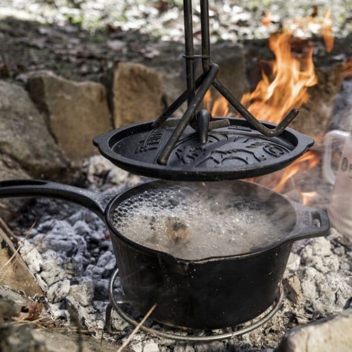Version plein air ou version cuisine, la marmite en fonte Petromax « FT12 » passe de la flamme au four et assure des cuissons très lentes. Grâce à son couvercle, elle fait aussi office de poêle. Un trou sur le couvercle permet de glisser un thermomètre pour surveiller la température. Contenance 12 l, poids 14,7 kg, 129,99 €.