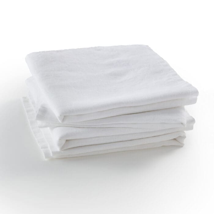 Rien de plus chic, de plus bohème, de plus adapté que le lin pour accompagner une cuisine naturelle, parfumée, mijotée ou grillée, qu’elle soit servie dans une salle sophistiquée ou rustique voire au jardin, l’été, sous une pergola. Lots de 4 serviettes blanches en lin lavé « Victorine », La Redoute Intérieurs, 19,59 €.