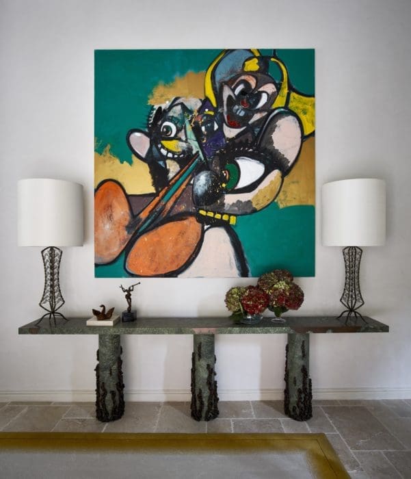 Il est cosmopolite, international. Du résidentiel à, très récemment, l’hôtellerie, c’est la création d’une esthétique qui le définit. Il aime fusionner les -exigences d’un espace domestique avec des œuvres d’art visuel, des sculptures, des installations souvent gigantesques. Son amour pour la nature transparaît dans une grande partie de son travail. « Je viens de créer une collection en bronze, “Lady Chatterley”, fantasmée, comme une forêt magique, romantique. Ma précédente collection, “Marie-Françoise”, s’inspirait de ma maison de Gozo, à Malte. Les palmiers demeurent ma signature Je projette des feuilles de palmier semblable à des ondulations de bronze sur les pieds de table, de bureau, de lit, etc. »