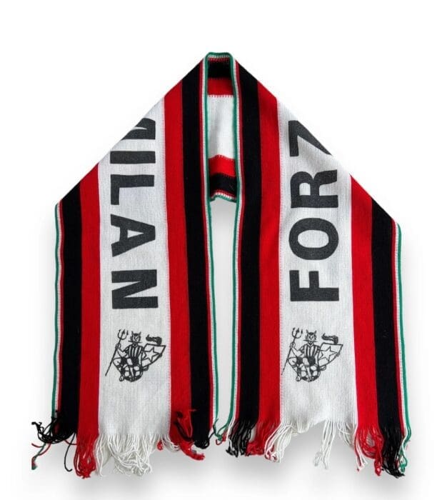 Impensable de ne pas avoir, sur un mur de Piccolo une écharpe vintage du club de football de l’AC Milan, que je soutiens et dont je regarde tous les matchs. L’Associazione Calcio Milan a remporté 19 titres de champion d’Italie. Elle m’inspire. 15 €.