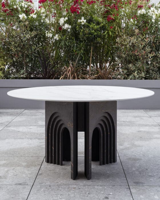 Gilles Reibell, architecte, designer, ne cache pas son enthousiasme. « Je suis stupéfait de la technicité du Dekton® et du Silestone®. Il est étonnant de voir comment ils combinent une extraordinaire résistance aux conditions extrêmes avec le design de différents marbres aux veines élégantes », dit-il à propos de ces matériaux, qu’il a utilisés dans son mobilier outdoor développé avec Cosentino. Baptisée « No Waste » et façonnée par la marbrerie Blanc Carrare, cette collection marque le début d’une belle démarche.