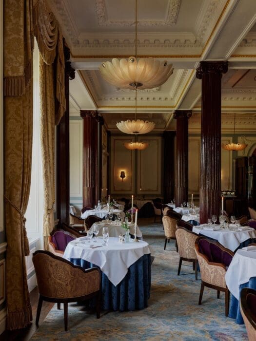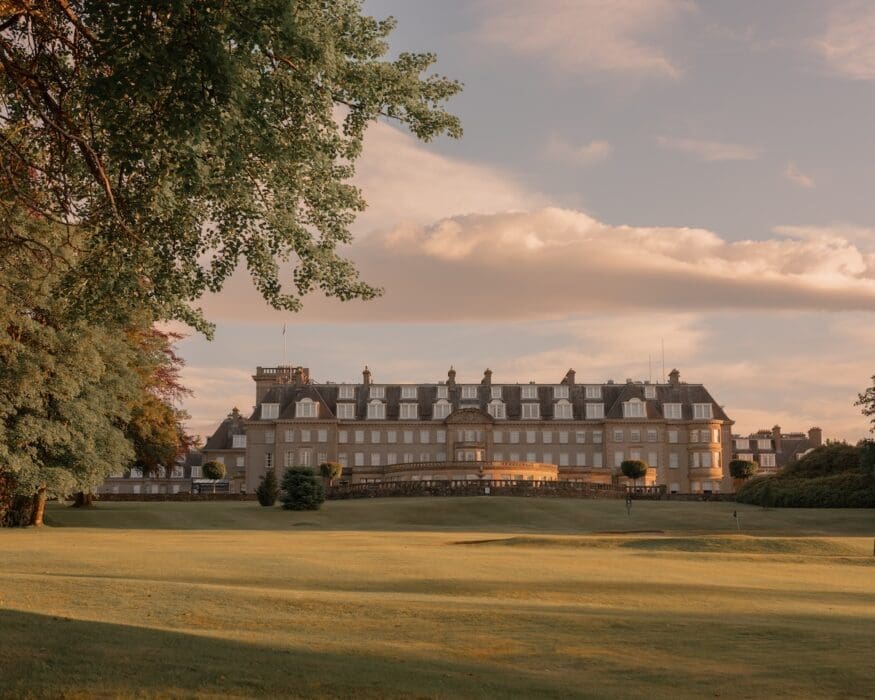 On le croirait presque décor en carton-pâte, tant de loin, il impose sa présence improbable, quasi kitsch avec ses hautes cheminées et ses murs crénelés dans cette campagne tranquille tout en courbes tranquilles. La première raison d’être de Gleneagles, lors de sa construction en 1924, accueillir dignement les très chics voyageurs urbains, empruntant d’Édimbourg, le premier train desservant la région. Des « pionniers » presque, venus respirer le bon air, se mettre au vert, non loin des Ochil Hill, chaîne de collines ondoyantes à l’horizon. Depuis, Gleneagles a conquis ses lettres de noblesse, ses cinq étoiles et son titre d’hôtel le plus select du Perthshire, sans réels concurrents en fait, seul dans sa catégorie. S’y empressent désormais, tout au long de l’année, des Américains, des Japonais, des Allemands, des Londoniens, etc. C’est cette clientèle, internationale, fortunée, fan tout autant de l’atmosphère très gentleman farmer, que des chambres (nombreuses – 232) oscillant entre le style Laura Ashley et country aristocratique, mais aussi du très select golf 18 trous qui incite, il y a dix ans, Sharan Pasricha, fondateur du groupe hôtelier Ennismore, à racheter la propriété. Son but : lui redonner son lustre, que les années ont un rien flétri, et quelques codes contemporains. Pasricha, comme tout amoureux, et il l’est de Gleneagles, investit des sommes folles en veillant avec les architectes de David Collins Studio et de 3DReid, à préserver l’ambiance princesse aux champs, version Downtown Abbey. Pour attirer une clientèle plus jeune, il parie, entre autres, sur le bien-être en développant un espace spa, sans doute l’un des plus remarquables de Grande-Bretagne, avec son institut de beauté, Bob & Cloche, ses piscines, ses installations sportives. La greffe prend et aux hôtes traditionnels, très poudre de riz et vieilles dentelles, s’ajoutent désormais des trentenaires, happy few, sportifs, des familles appréciant notamment La tanière, espace d’activités incroyables pour les 8 à 15 ans, et des épicuriens, toutes générations confondues. C’est que ce Leading Hotels of the World accueille la table du chef Andrew Fairlie, l’une des deux à deux étoiles en Écosse. Ce restaurant pris d’assaut est à réserver de nombreux mois à l’avance. Toute légende se mérite.