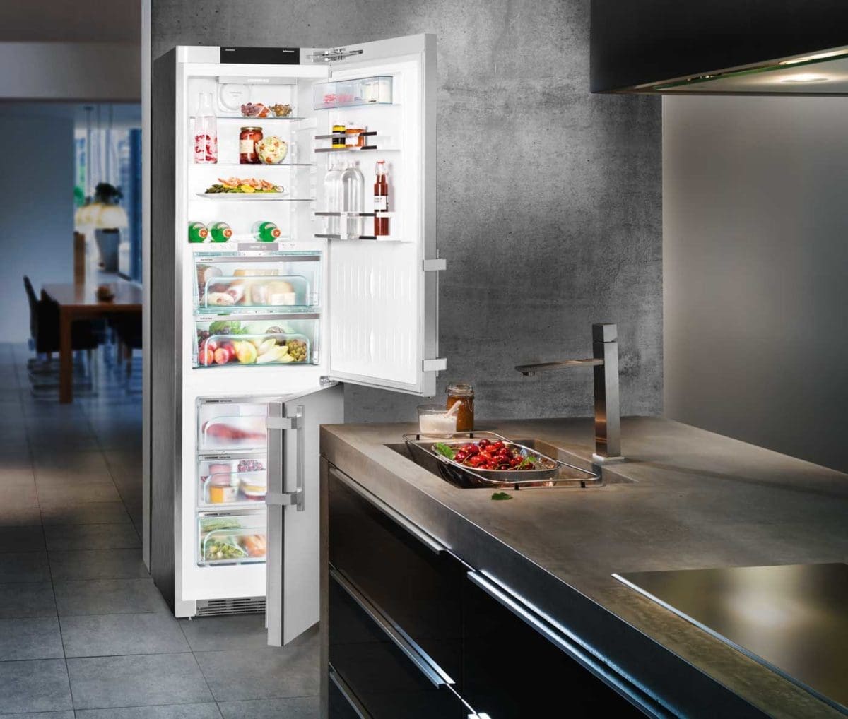 A l’occasion de la Foire de Paris 2016, l’Allemand Liebherr s’est vu décerner la médaille d’or au Grand Prix de l’Innovation pour son nouveau combiné NoFrost/BioFresh CBNPes 4858 doté de la technologie Blu Performance. Ce procédé innovant a pour but de miniaturiser et d’intégrer les circuits frigorifiques de manière optimale au socle de l’appareil. Résultat ? Un gain de capacité en volume de 20 % pour un appareil à la classe énergétique A+++, dont le design et l’inox s’allieront à tous vos intérieurs.