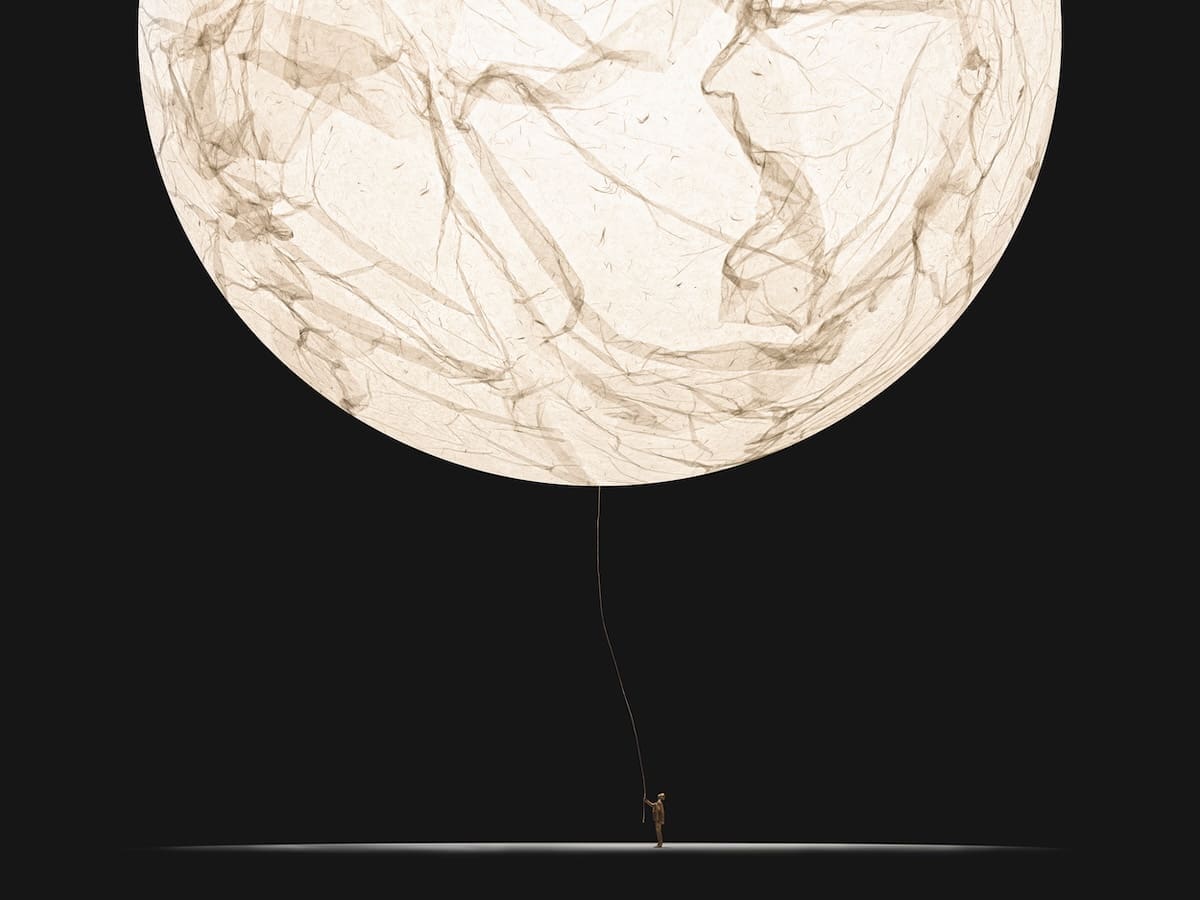 Pour célébrer cet anniversaire, Davide Groppi s’associe à l’artiste Gianni Lucchesi. Ensemble, ils racontent, avec subtilité et simplicité, l’histoire de l’homme et de la Lune, en suspendant sous cet astre intimidant une silhouette humaine miniature. Une œuvre hors du temps, qui invite à la rêverie, à la réflexion et à la contemplation, dans un délicat jeu d’équilibre entre le minuscule et l’immense, le terrestre et l’astral.