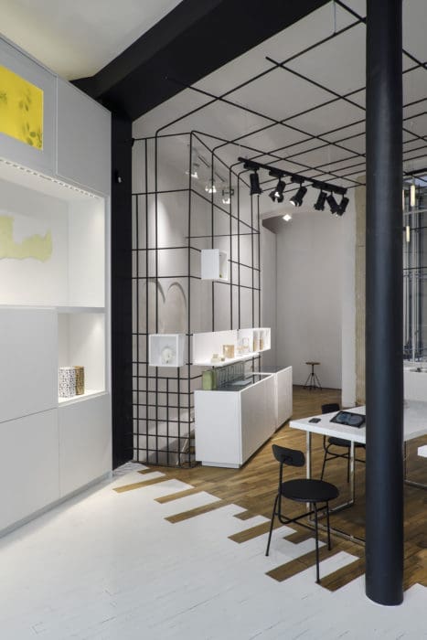 Mode, déco, lifestyle, loisirs, food, beauté… ce laboratoire hétéroclite et innovant met en valeur les enseignes, et séduit ses visiteurs en dévoilant un univers dynamique, évoluant en fonction des pièces et des ambiances. Son écrin, élégant et épuré, dévoile un espace de 180m2 réparti sur 2 niveaux, et a été conçu par le studio d’architecture Kompa, avec la collaboration d’Alexis Dupont, designer graphiste, de Madame Ilma, bureau de stratégie et de prospective, et de Stéphanie Perret, directrice artistique.