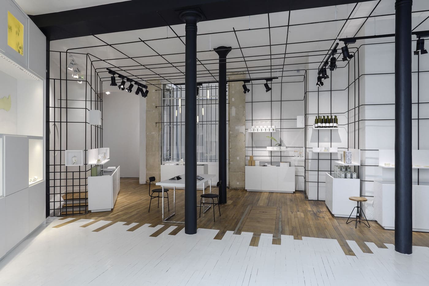 Mode, déco, lifestyle, loisirs, food, beauté… ce laboratoire hétéroclite et innovant met en valeur les enseignes, et séduit ses visiteurs en dévoilant un univers dynamique, évoluant en fonction des pièces et des ambiances. Son écrin, élégant et épuré, dévoile un espace de 180m2 réparti sur 2 niveaux, et a été conçu par le studio d’architecture Kompa, avec la collaboration d’Alexis Dupont, designer graphiste, de Madame Ilma, bureau de stratégie et de prospective, et de Stéphanie Perret, directrice artistique.