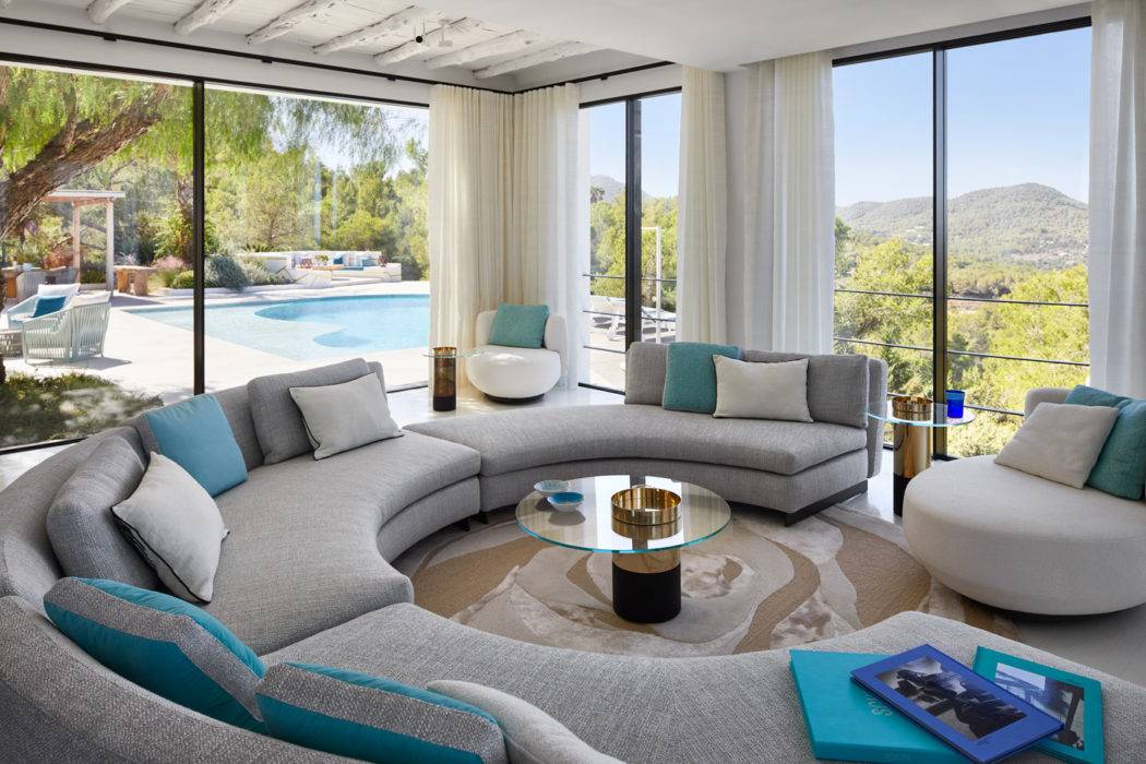 Introduire dans chaque pièce, entre les murs blancs, tous les bleus qu’Ibiza décline, du ciel à la mer.
