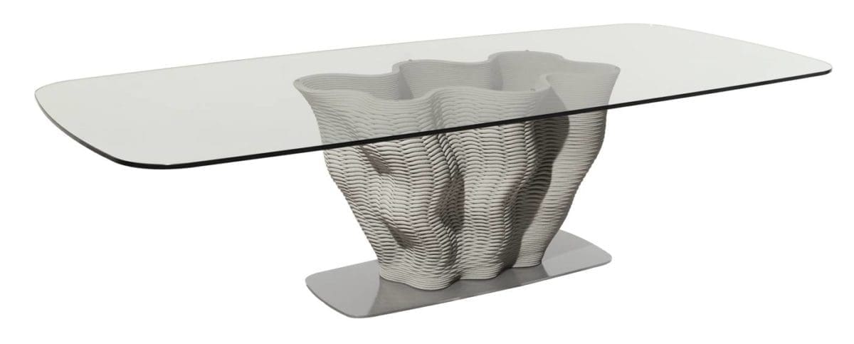 Pièce maîtresse de la nouvelle collection Roche Bobois, la table « Corail » réinvente l’expérience de la personnalisation, en ligne ou en magasin. Ses 5 formes et dimensions inspirées par une nature organique se modulent numériquement pour obtenir un piétement sur mesure. Une véritable sculpture, tout en strates et tressages de béton, obtenue à l’aide d’une imprimante 3D. Un process green qui permet de fabriquer chaque modèle n’importe où dans le monde, réduisant le coût carbone lié au transport.