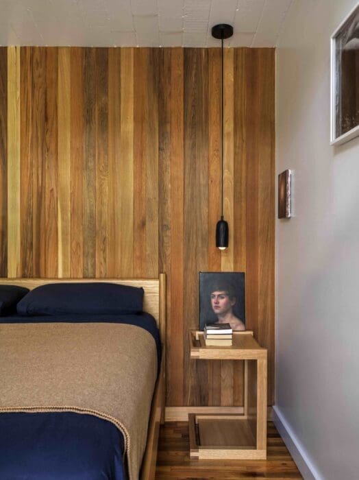 « “Agissez comme des artistes, faites preuve de créativité, d’imagination, vous avez mon aval” était la consigne d’Ilan. Ça donne des ailes, une telle liberté pour retrouver l’esprit originel de la villa, concevoir un lieu de vie, confortable, permettant tout à la fois de prendre un verre entre amis dans la cuisine ou de méditer près de la cheminée. Nous nous sommes dépassés, choisissant une palette très Fire Island, du vert foncé des arbres au ton sable rehaussé d’ocre et d’orange des dunes, mélangeant des matériaux, le bois de cèdre, l’aluminium, l’acier inoxydable, pour les boutons de porte dans la cuisine par exemple. Et au final, mixant des éditions exclusives de jeunes designers avec des meubles vintage, chinés de-ci de-là contant la première période de l’habitation. “Osez !” Oui, nous avons osé. Et le résultat a été tel que, son refuge insulaire achevé, Ilan nous a confié la décoration de son appartement new-yorkais. Une vraie reconnaissance ! » se souviennent les deux concepteurs.