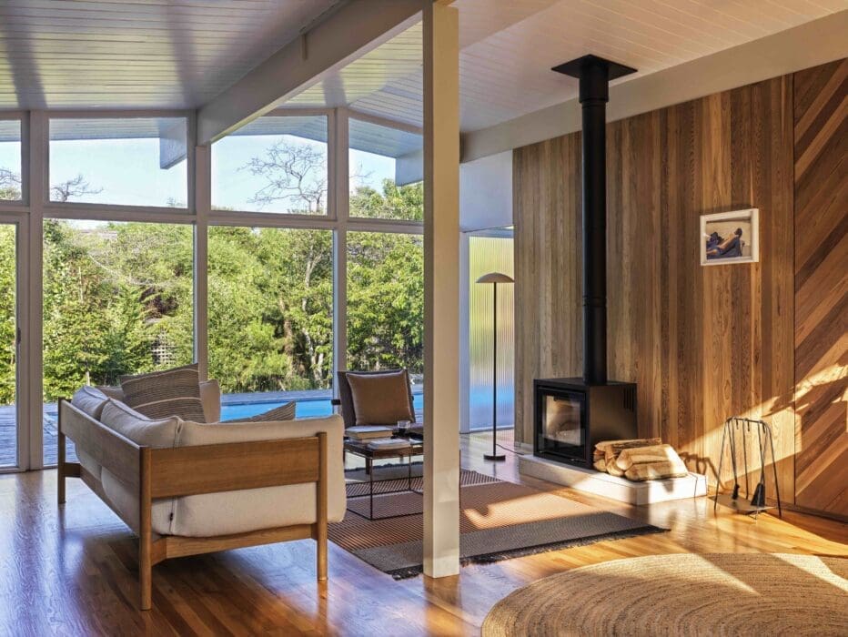 « Nous avons d’emblée aimé cette maison, l’une des plus anciennes de l’île, et avons eu à cœur de lui redonner son style, explique Noam Dvir. L’essentiel, l’urgence : l’alléger, supprimer les placards, les étagères, les objets, les appareils ménagers, les teintes qui l’encombraient, l’étouffaient. Et en parallèle, dégager la vue sur l’océan, la plage, Long Island. »