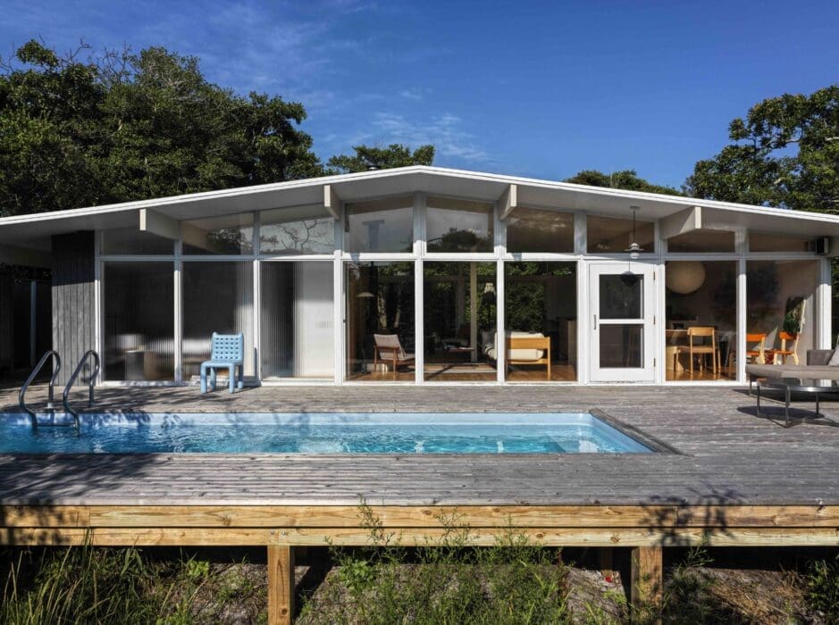 Posée sur l’océan Atlantique, au sud de Long Island, improbable langue dunaire de quarante-huit kilomètres de long sur un seul de large, Fire Island s’est muée au fil des décennies en lieu de villégiature de la haute société new-yorkaise. Une terre longtemps inhabitée, déserte, où les végétaux endémiques s’en donnent à cœur joie. Une terre d’asile, de tolérance, au mitan du XXe siècle pour la communauté gay, l’homosexualité étant, ce qu’on a oublié, totalement interdite et réprimée aux États-Unis jusqu’en 1962. Sur Fire Island, hier comme aujourd’hui, quelle que soit son inclination sexuelle, chacun mène sa vie comme il l’entend, sans tabou. L’île s’est ainsi développée, soucieuse du bien-être des humains et de la nature, solidaire. Avec une architecture à son image, simple, élégante, décontractée, comme celle d’Horace Gifford, qui a signé les premières demeures.