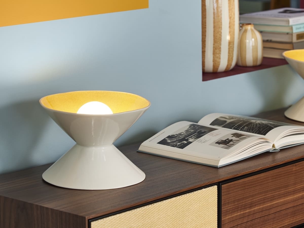 Icône de la Maison Sarah Lavoine, la lampe Sicilia (ci-dessus) est devenue en quelques années un classique du design intérieur. Sa silhouette poétique évoque un coucher de soleil méditerranéen, diffusant une lumière douce et chaleureuse.