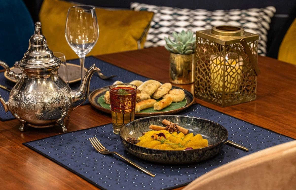 Dîner mille et une nuits, jusqu’à 8 personnes, entrées à partager-3 plats-desserts-thé à la menthe et à l’absinthe, à partir de 79 € par personne