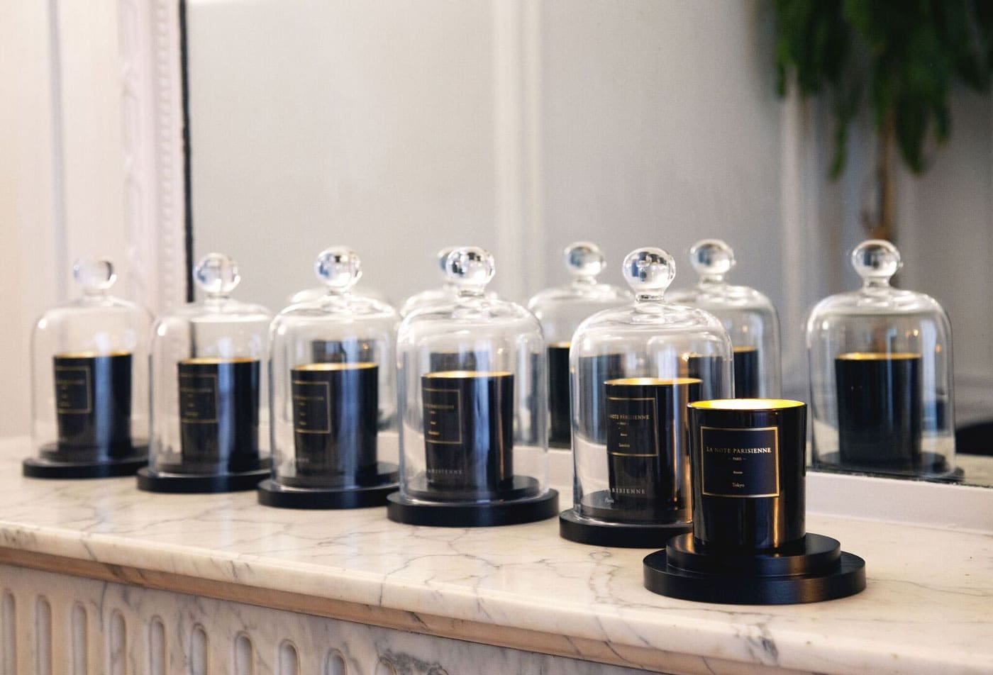 La Note Parisienne possède une gamme de 14 bougies représentant chacune un arrondissement de Paris chargé d’histoire, une ligne privée de 6 bougies noir et or ayant pour thème les grandes villes mondiales comme Londres ou Rome, mais également des sprays d’ambiance.