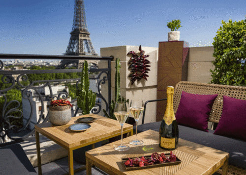 L’une des adresses les plus élégantes de la capitale accueille la plus prestigieuse Maison de Champagne, l’occasion de passer un été pétillant !