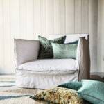 Inédite et haut de gamme, les coussins revêtent différentes soies, velours lavés, le tout avec des finitions « coutures », des dessins emblématiques et des matières pour le moins originales. Dans un décor où le moindre détail compte, l’accessoire trouve naturellement sa place, se met en valeur, se joue des textures et des couleurs.