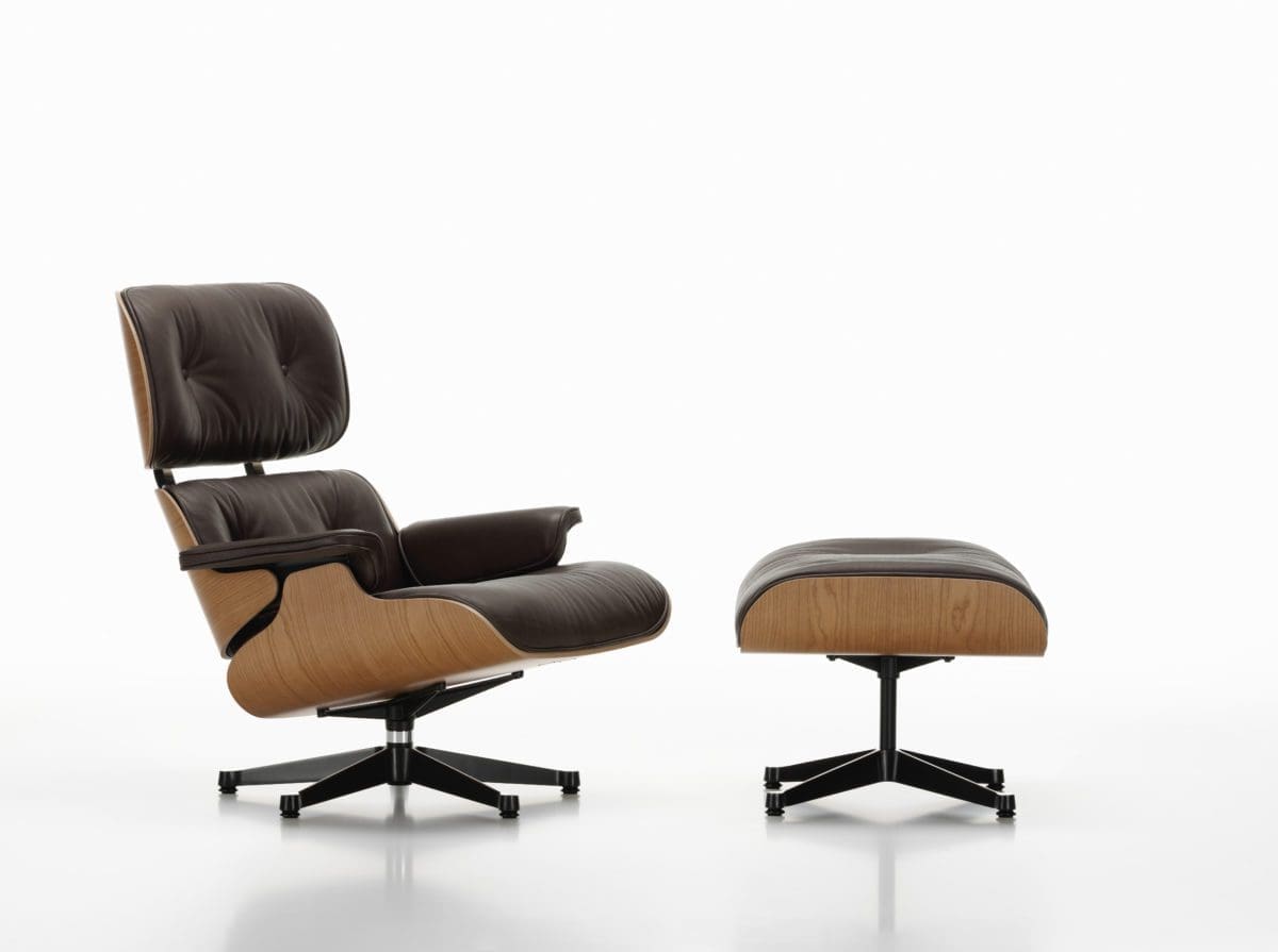 Le « Lounge Chair » demandera à Charles et Ray Eames deux ans de travail. Avec ce fauteuil et son ottoman assorti, le couple phare du design américain voit ses recherches donner naissance à un objet devenu culte. Fabriqué en contreplaqué moulé et en cuir, il connaît le succès dès sa mise sur le marché, en 1956. Directement inspiré des fauteuils clubs anglais, le « Lounge Chair » est, depuis cette date, produit sans interruption.