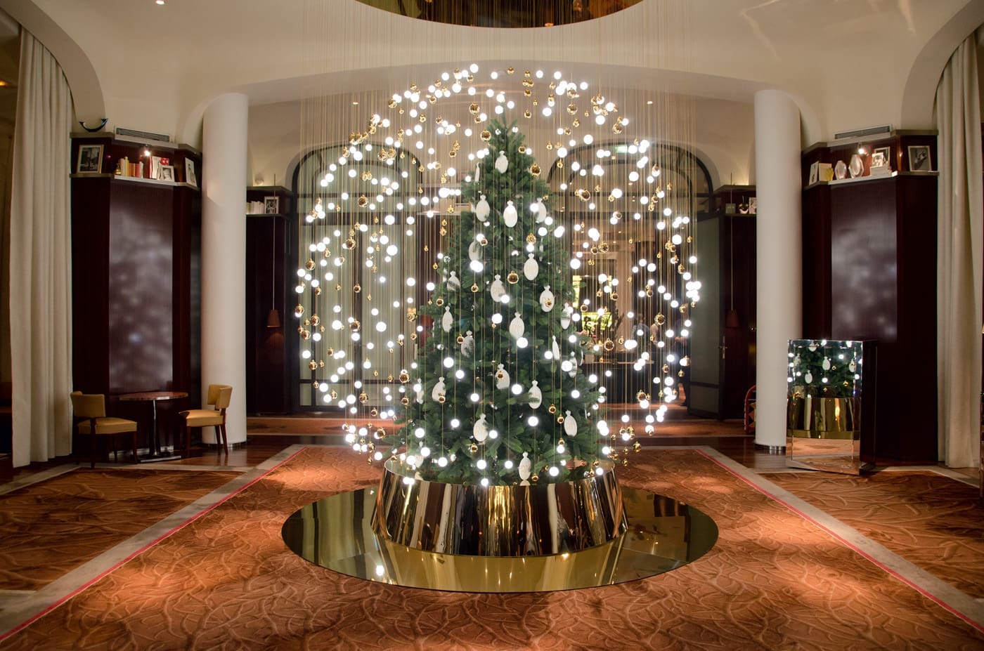 Comme le veut la tradition, le héros des fêtes de fin d’année et la pièce maitresse d’un Noël enchanté ; le sapin de Noël, s’installe au luxueux hôtel parisien, Le Royal Monceau – Raffles Paris, jusqu’au 8 janvier 2018. Le lobby du Palace se pare de son plus bel habit afin d’émerveiller petits et grands. La designer et créatrice de Beau&Bien et spécialiste du LED, Sylvie Maréchal, réinterprète le fameux conifère et conserve sa nature brute.