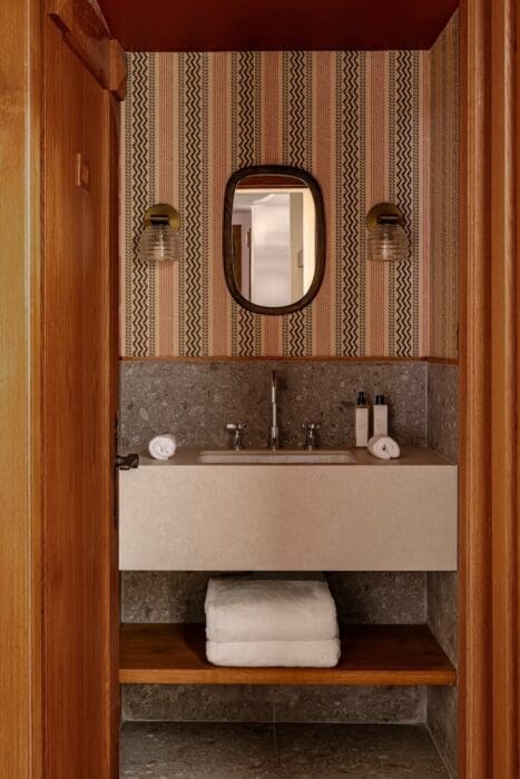 C’est en souvenir de leurs vacances en famille, dans des villas aux portes grandes ouvertes, des va-et-vient des uns et des autres, des repas, des soirées joyeuses, que les deux frères, Thibaud Elzière et Robin Michel, nés à onze ans d’écart, décident d’acheter, à partir de 2021, dans des lieux de villégiature (Les Baux-de-Provence, Hossegor, Courchevel, Les Hauts de Gordes, Cap Ferret, Paris, Megève) des maisons remarquables. De leur redonner leur âme, leur style, pour que des familles, des clans, vivent les mêmes expériences qu’eux. Principe de base : concevoir tous les chantiers avec le studio Claves Architecture, en lien avec les meilleurs artisans locaux et une approche très arty, héritée de leurs parents. Les deux frères s’accordent à trouver leur septième propriété, Le Sarto, qui en latin signifie « souffle de la Savoie, force du monde » et désigne les petites maisons du vignoble, la plus aboutie, la plus en phase avec ce qu’ils aiment. Car chaque maison est avant tout la leur.