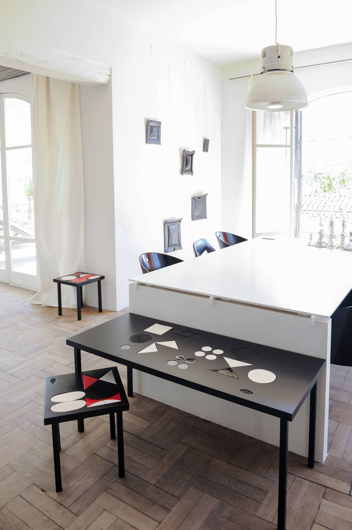 Le showroom Ligne Roset Réaumur présente une série de pièces authentiques et uniques. Entre graphisme et design, les créations Julien Capron sont à la limite de l’œuvre d’art, et conjuguent bois et céramique dans le but de souligner le contraste entre brillance et opacité des matériaux.
