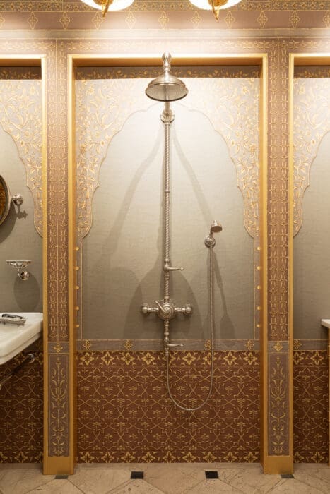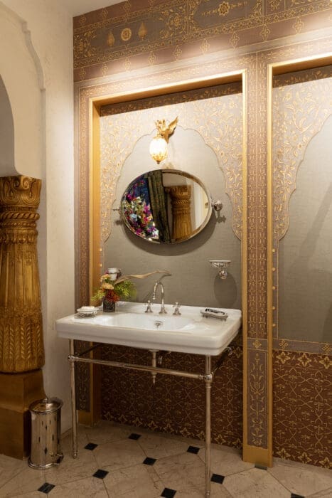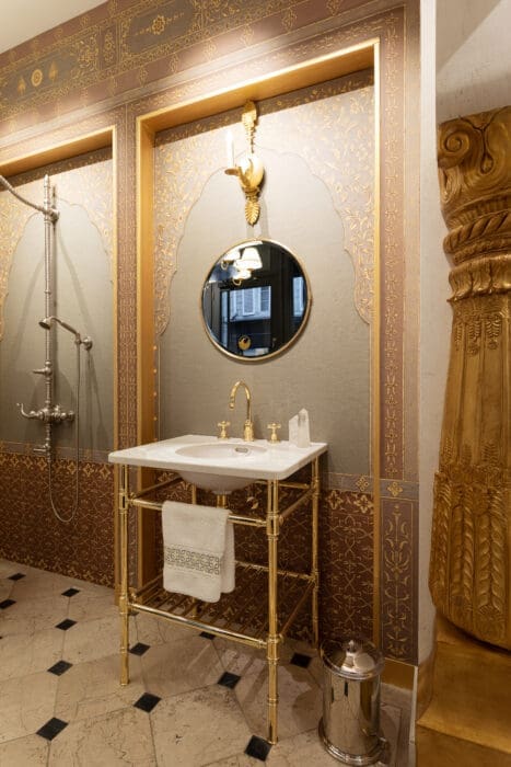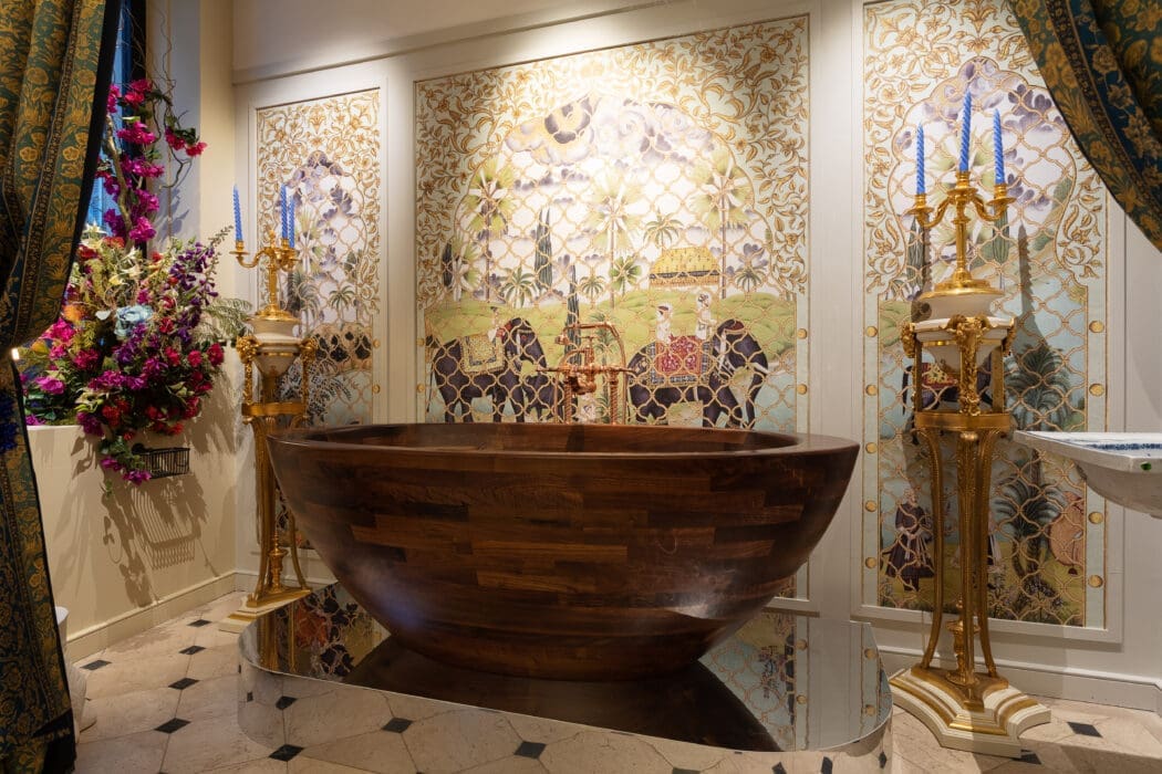 L’expérience immersive est complétée par des éléments décoratifs d’exception : lustres signés Tisserant Art & Style en collaboration avec La Compagnie du Verre, papiers peints panoramiques d’Iksel Decorative Arts, étoffes précieuses de l’Atelier des Carmes ou encore une baignoire en bois de Padouk signée Unique Wood Design. Chaque détail a été soigneusement choisi pour exalter la richesse du patrimoine indien et offrir un voyage sensoriel unique.