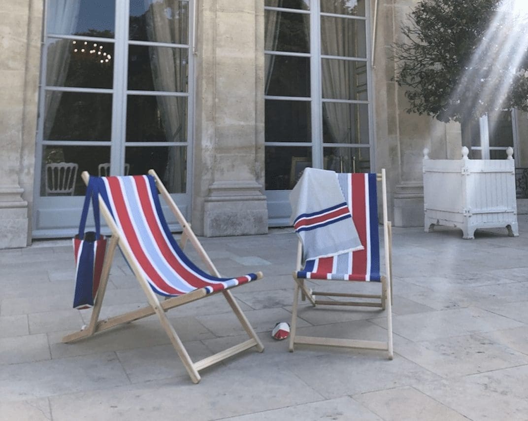 Alliant tradition et modernité, la collection se compose de produits indispensables pour l’été : transat, sac de plage, drap de bain et pochette.