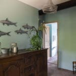 « Promenade à cheval », « retour de la pêche », « la chasse aux papillons », « la cueillette », « les champignons », « retour de chasse » et « sieste au verger »… chaque cottage porte le nom d’une activité en relation avec la vie au vert et à la campagne. L’escapade prend forme en entrant dans les cottages : meubles de style, papier peints graphiques, objets chinés qui racontent une histoire… Stella Cadente et son associé Florian Claudel guident les hôtes sur les chemins escarpés des sous bois le long d’une rivière et instaurent une ambiance conviviale et de détente qui vient rompre avec la vie urbaine. Les coloris imitent la nature environnante : mousse d’arbre, feuille de chêne, lichen et camaïeux de brun.