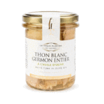Succombez à son délicieux thon blanc ! Péché à la ligne dans le golfe de Gascogne, le thon blanc Germon, connu pour sa délicatesse et sa rareté, est ensuite préparé́ frais, cuit et conditionné à la main en bocal pour vous offrir 190g d’arômes marins.