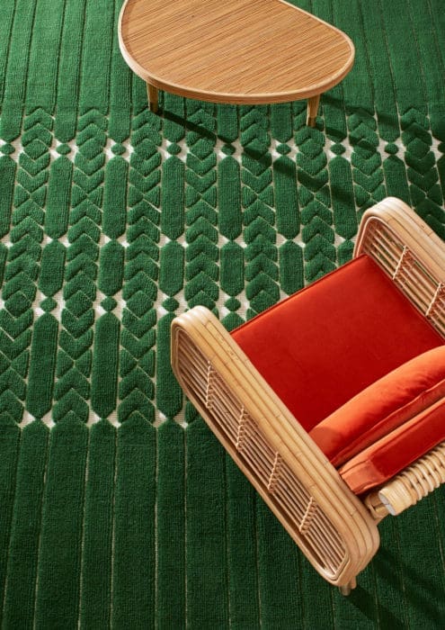 India Mahdavi nous invite à pénétrer dans son Jardin intérieur… Les tapis de Cogolin sont ici imaginés dans la largeur, rompant avec la tradition de la maison dans un esprit ludique où le jeu d’assemblage permet une composition unique. Le sens des couleurs de la designer allié au savoir-faire de la manufacture nous offre un résultat époustouflant !