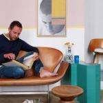 « Il s’agissait effectivement d’exploiter la structure ancienne du lieu afin de mélanger du mobilier contemporain avec des aplats de couleurs que l’on retrouve sur un mur, sur un meuble d’appoint ou encore dans l’encadrement d’une porte, explique-t-il, et de faire que l’ensemble ait un petit côté Palm Springs des années cinquante. C’est-à-dire un espace de vie qui soit léger et ludique et véhicule davantage des émotions que des messages décoratifs. Mais j’aime bien également l’idée d’en avoir fait une sorte de laboratoire qui fasse écho à mon métier, dans la mesure où la décoration change tout le temps, comme la tonalité des murs, en fonction des époques et de mes trouvailles. Un lieu d’expérimentation pour tester de nouveaux mélanges, de nouvelles émotions. »