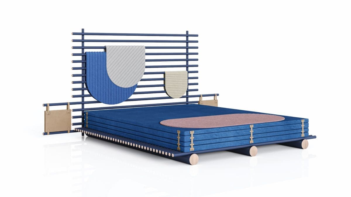 Élise Fouin et Elie Gamblin ont trouvé un terrain d’entente parfait : le lit ! La designer française formée à l’école Boulle est réputée pour être une véritable touche-à-tout. Audacieuse, elle expérimente tous les types d’objets et toutes les matières, avec un penchant pour le savoir-faire des Entreprises du Patrimoine Vivant. Quant au fondateur et dirigeant de Maurice & la Matelasserie, issu de la troisième génération d’une famille d’artisans matelassiers basée dans l’Aisne, il aime vitaliser sa marque grâce à des collaborations design. Banco ! Conçu par Élise comme un mikado, à partir de poutres en hêtre sur lesquelles sont chevillés des cylindres, avec, en prime, vide-poches et jeu de plaids colorés, l’astucieux lit Millefeuille accueillera donc désormais le matelas breveté inventé par élie. Personnalisé, évolutif et composé de strates amovibles jointes par des lanières en cuir, ce matelas est une belle leçon de durabilité et d’innovation hexagonale.