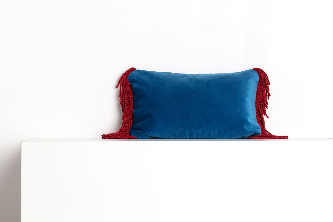 Fait de velours, de passementerie et garnis de plumes de canard 100% naturelles, les coussins de Maison Madeleine sont ornés de franges. Un souci du détail qui apporte à ces objets une dimension particulière. les passementeries viennent de la mythique Maison Houlès, le velours est français : chez Maison Madeleine, le respect du savoir-faire traditionnel est de rigueur.