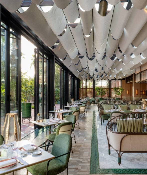 Ainsi, par touches, les deux associés ont réenchanté les espaces de restauration : le Salon de thé de Pierre Hermé ; L’Italien et L’Asiatique confiés à la super star de la cuisine internationale, le plus américain des chefs français, Jean-Georges Vongerichten ; le bar Churchill ; le pavillon de la piscine et la table marocaine de Rachid Agouray, dotée d’un rooftop et d’une grande tente berbère. « Nous avons abattu des murs pour ouvrir L’Asiatique sur l’extérieur, mixé le décor marocain d’origine avec du mobilier exclusif, telles les tables en émaux et métaux de la Nantaise Marie-Hélène Soyer, les lumières de Stéphane Carratero de l’entreprise parisienne Voyons Voir. »