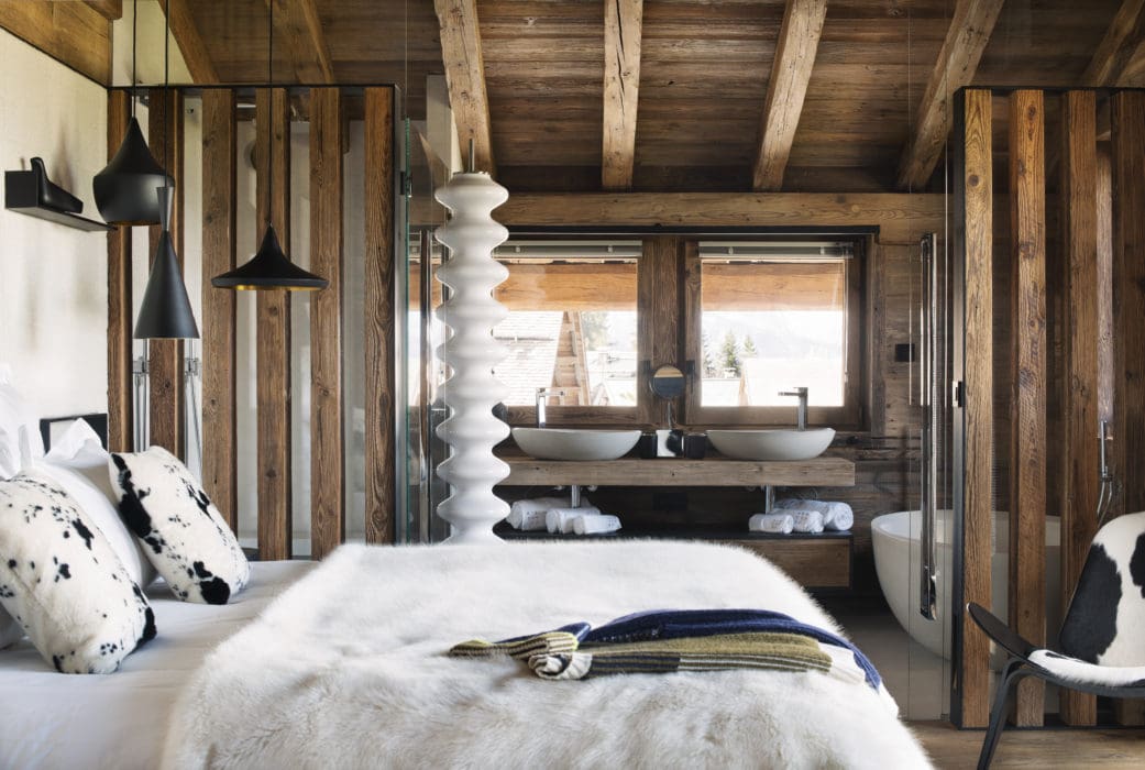 À flanc de montagne, cette ferme à l’ancienne joue la carte d’un aménagement intérieur contemporain, doux et confortable, au luxe décontracté. Un conte d’hiver avec une vue panoramique sur le Mont-Blanc.