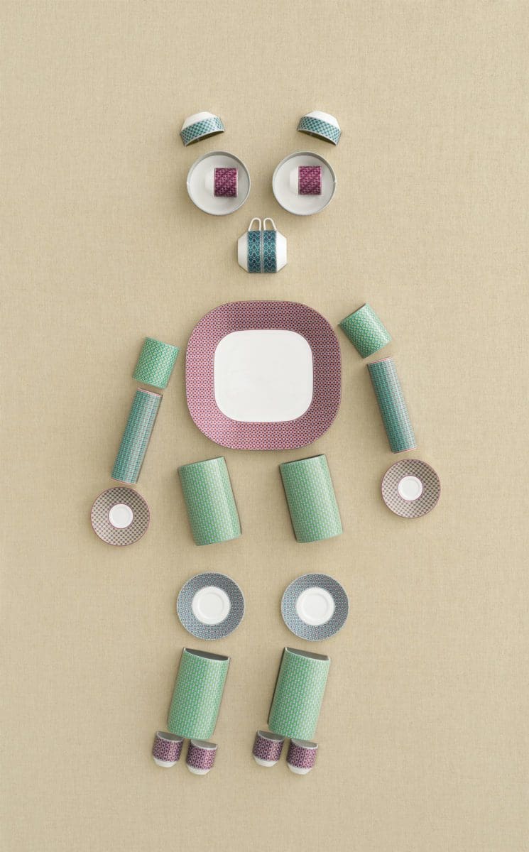 Un souffle de créativité constant qui nous fait voyager autant que rêver et qui trouve sa pleine expression dans la sublime collection « Tie-set » (photo), inspirée des micro-motifs de l’univers de cravate. Cette dernière née des arts de la table de la maison Hermès nous invite à associer, à multiplier ou à mixer 20 dessins et 20 couleurs dans un esprit ludique où la fantaisie gagne à tous les coups. Autant de combinaisons graphiques vitaminées à construire autour de 34 pièces aux filets mandarine, menthe ou grenat. Le service de table dialogue ici en toute liberté avec le soliflore ou le vase dans un joyeux carambolage selon l’heure ou l’humeur. Une collection lumineuse qui rend également un élégant hommage au geste de l’artisan !