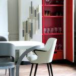 Dans le très chic fumoir, règne une ambiance glamour qui fait la part belle au design et aux pièces uniques. Fanny Perrier y a imaginé le bar « Moon » tout en transparence. Tabourets « Bishop » d’India Mahdavi, canapé « Luis » (B&B Italia), fauteuil en cuir « Feel good » (Flexform) et guéridons Brian Collins. Sculptures murales en verre argenté Jeff Zimmerman et lustre en verre gravé de Murano (Galerie William Vonthron). Rideaux Dedar.
