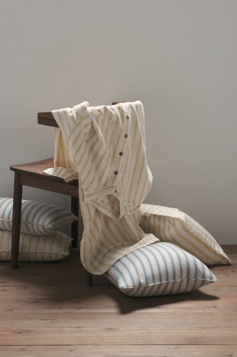 Elaborés dans une optique de durabilité, les textiles, aux imprimés linéaires, conservent la chaleur et protègent des vents froids de l’hiver et sont utilisés pour habiller les meubles, les matelas et les sommiers.
