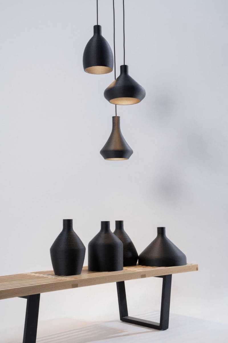 Les concepteurs de LightArt ont recherché des formes de pendentif classiques axées sur une géométrie et une courbure distinctes avec une finition mate, donnant aux luminaires une qualité de poterie. La finition texturée, inhérente au processus de fabrication additive, est complétée par des ajustements algorithmiques subtils pour obtenir une sensation unique à la main. Cette qualité tactile et filée a inspiré le nom de la nouvelle collection : Coil. L’équipe a choisi 7 formes élégantes, définissant délibérément les options infinies offertes par la fabrication additive pour créer un produit organisé avec une sensation LightArt distincte. Partant de ce qui est attendu d’un article imprimé en 3D, la forme est texturée, tactile et unique.