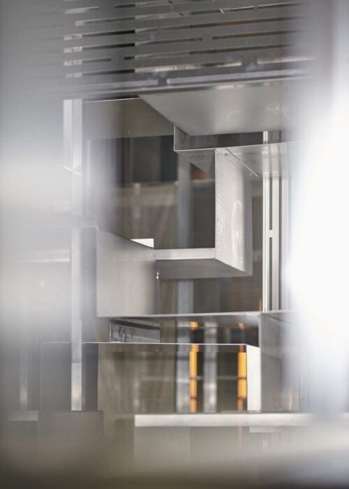 L’univers de Pauline Leprince est un jeu de contrastes. Jeune femme de sa génération, elle garde plus que jamais les pieds sur terre sans jamais cesser de rêver. Elle plie le métal pour l’adoucir, métamorphose un intérieur en théâtre intime, joue avec les espaces et les objets pour interroger la réalité et notre place dans le monde.