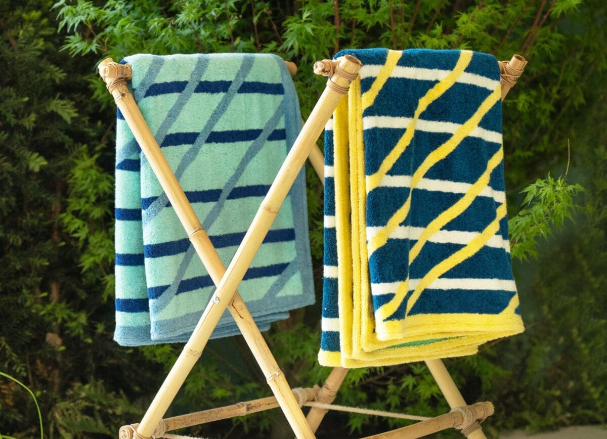 C’est grâce à sa chaise d’arbitre que le designer Pierre Charpin avait fait ses premiers pas avec l’éditeur de mobilier de jardin Tectona, une collaboration poursuivie depuis avec des pièces intemporelles qui ont nourri le catalogue. Grands amateurs de design, les propriétaires de Tectona ont eu l’idée de faire appel à lui pour dessiner le motif d’une serviette de bain. En effet, Charpin est aussi célèbre pour ses dessins abstraits, qui ont déjà été exposés comme des œuvres autonomes, que pour son mobilier. Il allie ici ses deux passions dans ce drap de bain décliné en trois teintes, un entremêlement de lignes vif et joyeux qui enluminera les journées estivales.